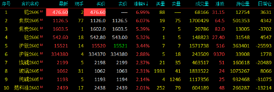 2025年12月18日,国内期货主力合约涨跌不一。钯封涨停板,涨幅7%,焦煤涨超6%,铂、焦炭涨超5%,沪银涨超3%,沪锡、玻璃、烧碱、纯碱涨超2%;跌幅方面,集运欧线跌超3%,多晶硅跌超2%,豆二、豆一跌超1%。