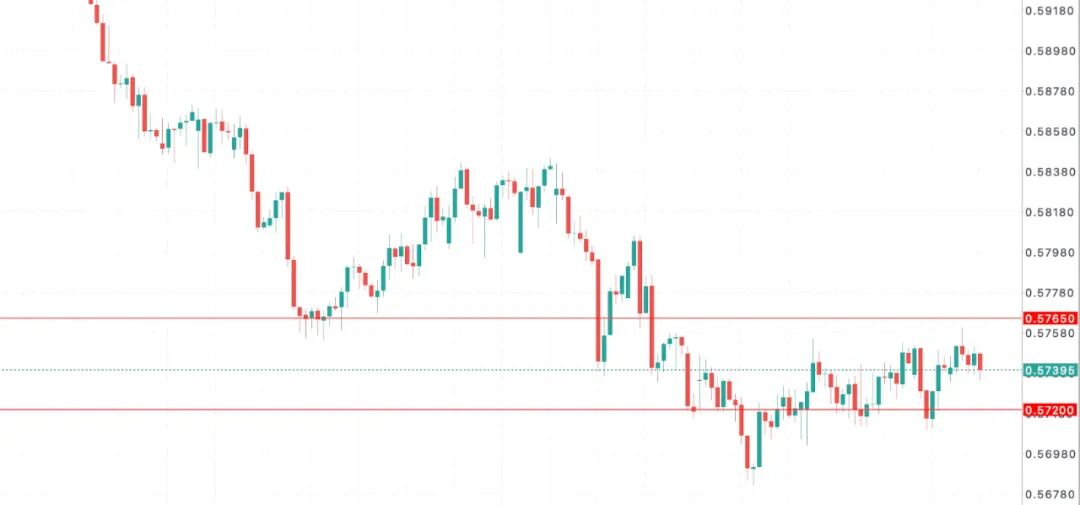 综合而言,尽管新西兰统计局发布的新西兰第三季度通胀压力升至2024年年中以来的最高水平,但当前经济环境显示,通胀虽处温和上升趋势,但整体疲弱的经济增长仍然难以改变新西兰联储维持货币宽松的政策叙事。因此,需防范纽币在基本面传导逻辑上所隐含的“弱上行,强回落”风险积累。而短线价格走势维度将维持0.5765-0.5720区间展开多空拉锯,纽币需在成功打破该区域格局限制后,才有望在当前多空博弈临界面中寻求新的短线突破情景。对于买方而言,尽管纽币在对0.5765区域进行有效突破确认后有望抬升至0.5800目标区域附近,但0.5765这一区域仍然对其构成强阻力效应,暗示遇阻回落以及冲高回落风险尚存。与此同时,市场买方风险焦点需继续关注0.5720一线,如若该区域防线失守,则需紧惕市场空头抛售热度升温,从而导致汇价面临进一步下行测试0.5681低点区域的风险加剧。